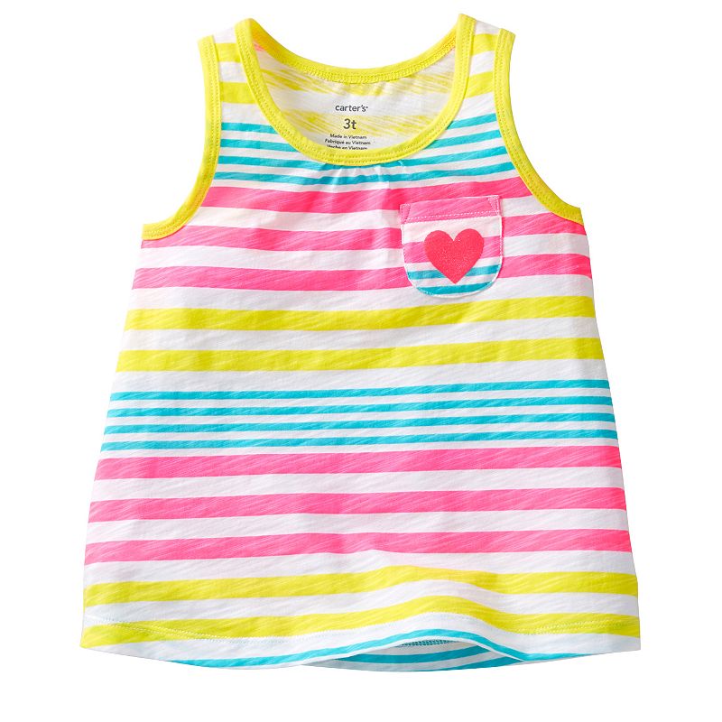 גופיה קצרה קייצית קלילה ונעימה לתינוקת של חברת Carter’s, צבעי ניאון ולב מנצנץ בכיס