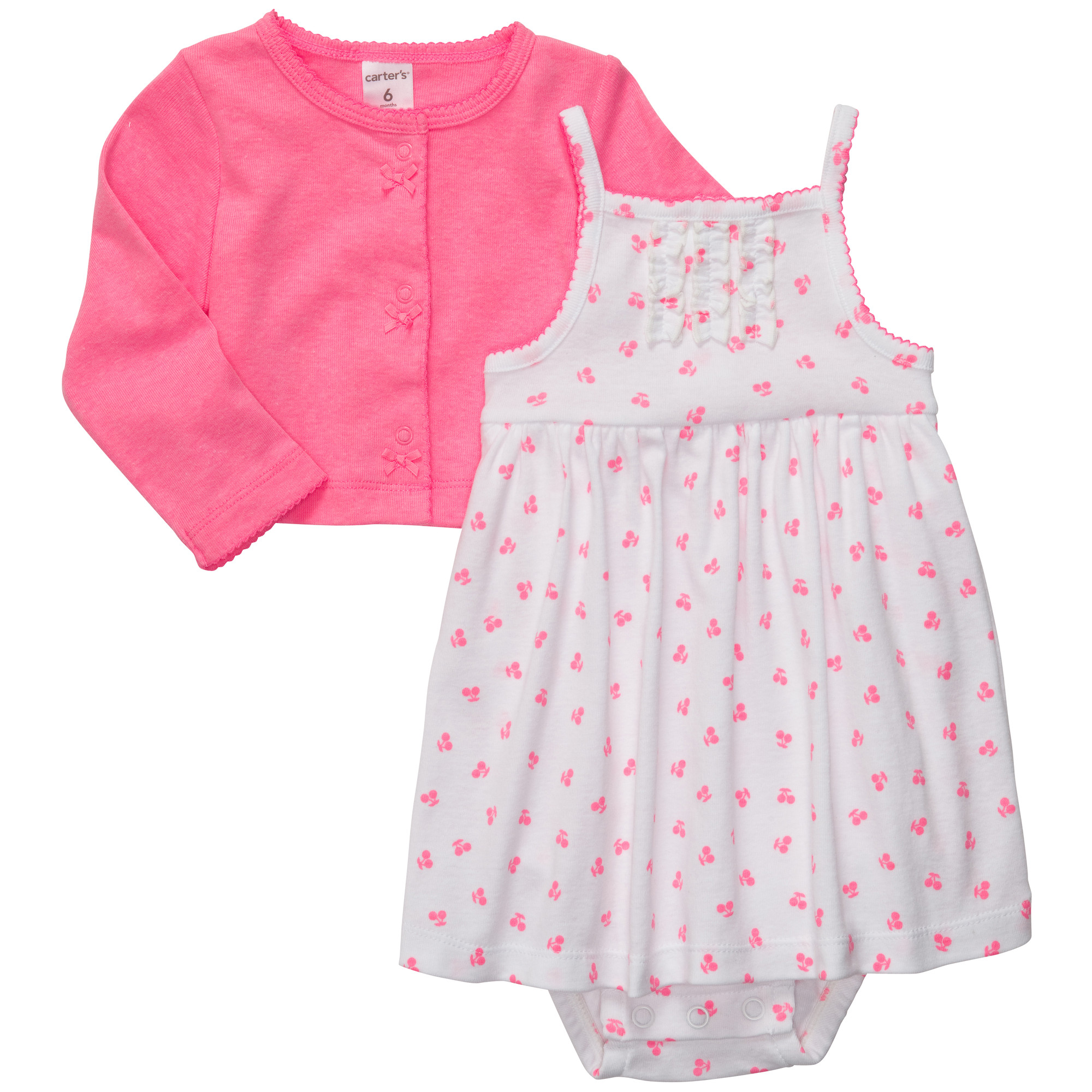 מארז בגד גוף שמלה וקרדיגן לתינוקת מבית Carter’s – ורוד דובדבן